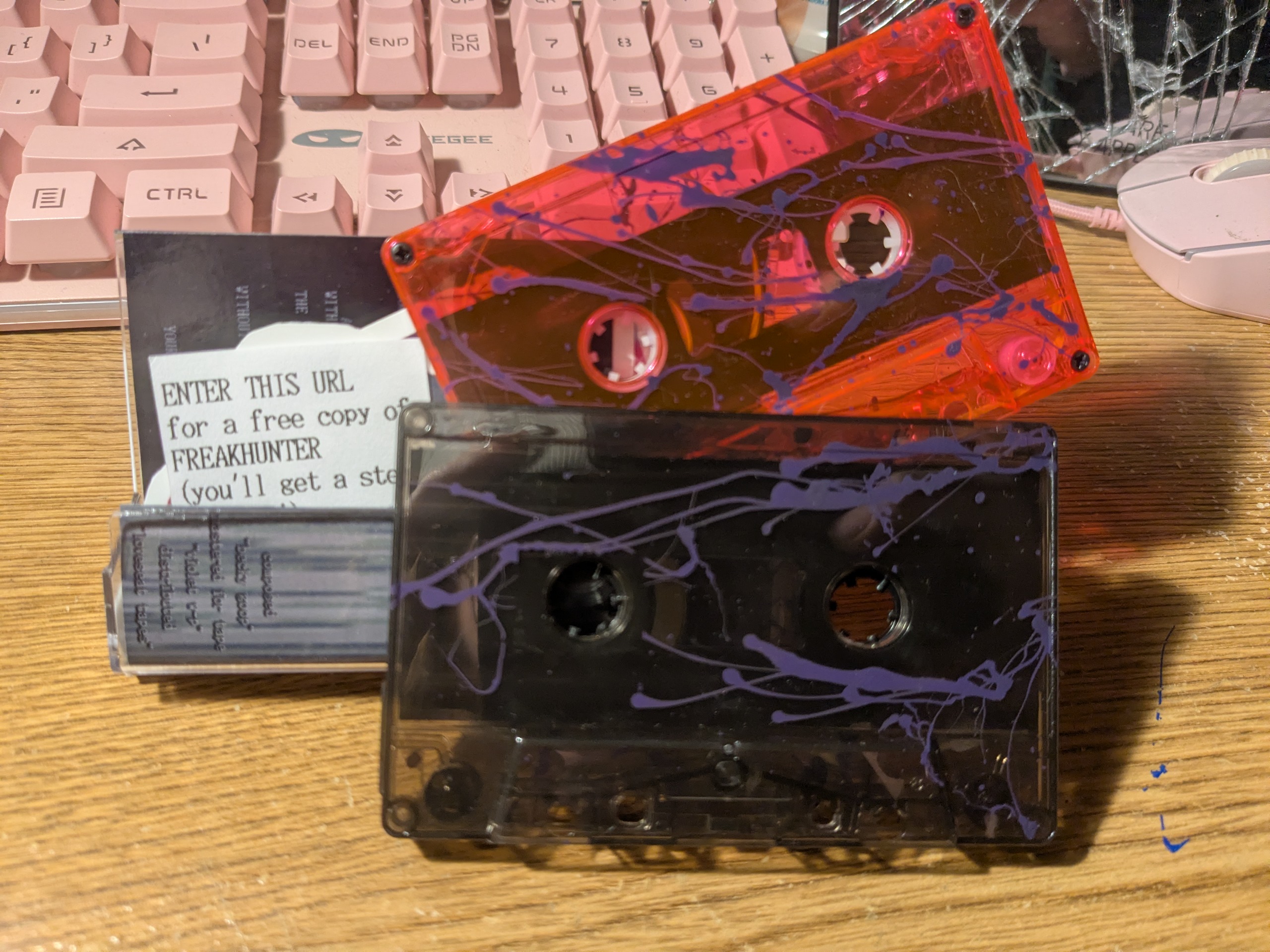 limited cassette pressing of the soundtrack to becky goop's dungeon-crawler-rail-shooter-action-hybrid FREAKHUNTER! this release includes a double sided j-card, paint splattered cassette, some neat stickers plus a download code for the game itself!